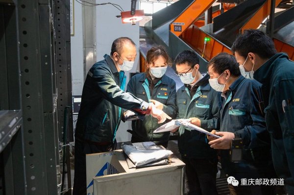 渝北空港,重慶市郵區(qū)中心局處理場地內(nèi),一輛輛綠色郵車往來正酣,自動化皮帶裝置全天候運(yùn)轉(zhuǎn),分揀作業(yè)人員穿梭其間,加緊將包裹遞向千家萬戶。