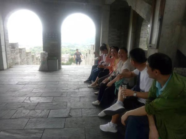 進(jìn)入景區(qū)后,映入眼簾的怪石嶺小長(zhǎng)城,雄偉壯麗宛若一條長(zhǎng)龍,此景頓時(shí)讓人豪氣頓生:“不登長(zhǎng)城非好漢!”。職工們?nèi)宄扇涸谂实?,汗流浹背卻不停步,這是一個(gè)痛并快樂(lè)的過(guò)程。頂著高照的艷陽(yáng),走在崇山峻嶺之上,身旁是青翠欲滴的樹(shù)木,瀏覽著散落在山中的怪石,不知名的野花點(diǎn)綴其間,讓人心情放松。登到最高的“白云亭”上遠(yuǎn)眺:溪霞水庫(kù)宛如一塊溫柔的翠玉無(wú)言靜臥在梅嶺山脈之中,而小長(zhǎng)城橫跨延綿群山之巔,傲然于蒼天之下碧空之中,遠(yuǎn)遠(yuǎn)看去,宛如猶如一條蜿蜒絲帶纏繞在青山綠水間,撲面而來(lái)的涼風(fēng)讓人悠然而嘆,工作的疲憊在此時(shí)隨風(fēng)飄散,頓時(shí)滿心舒暢。