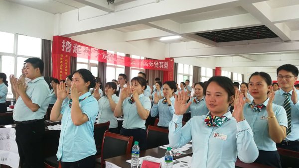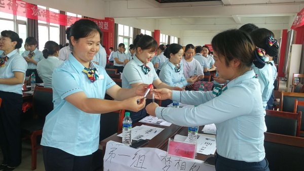 全體參培訓(xùn)人員分成了12個(gè)團(tuán)隊(duì),采取加分制鼓勵(lì)各團(tuán)隊(duì)積極參與互動(dòng)。學(xué)員們上臺(tái)展示儀容儀表,老師詳細(xì)解說服務(wù)狀態(tài)下的儀容規(guī)范,教授正確的站姿、坐姿、身體手勢語言、物品取放方式;講解如何打造親切動(dòng)人的微笑。隨著音樂做起手語操,讓學(xué)員們發(fā)自內(nèi)心的笑起來,通過實(shí)戰(zhàn)演練,詳細(xì)講解接待客戶的全流程。