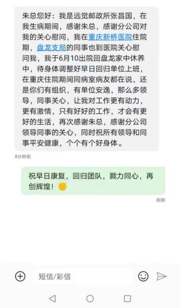 6月15日,榮昌區(qū)分公司段靖同志代表榮昌分公司工會(huì)探望正在患病治療的黨員職工張昌國同志,表達(dá)分公司對(duì)職工的關(guān)懷和關(guān)心,增強(qiáng)員工對(duì)企業(yè)的歸屬感和認(rèn)同感。