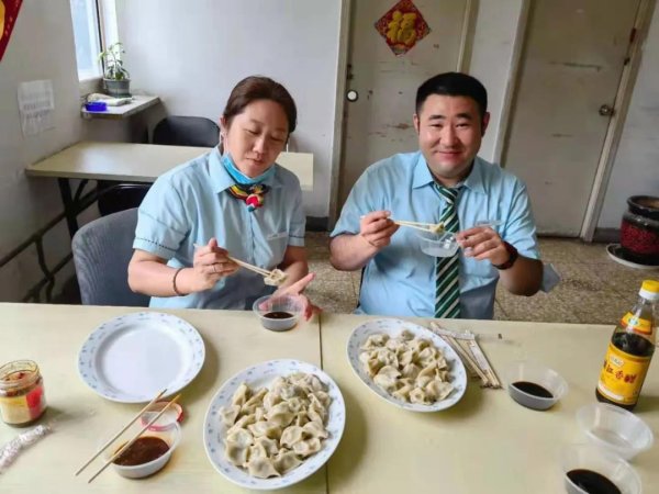 儀式感, 是我們平淡生活增添的色彩。 貼心的郵政人也很注重生活中的儀式感。“吃餃子啦”!隨著一聲吆喝, 一盤盤頭伏的餃子端上了桌, 大家圍坐在一起一口一個的吃了起來。這可不是在飯館里的場景,而是在朝陽郵政公司的投遞部、營業(yè)部和職工小家里,郵政快遞小哥們和郵政員工們頭伏的午餐!
