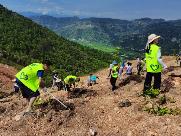 參加植樹人員到達(dá)活動(dòng)目的地后,爭(zhēng)先恐后地領(lǐng)取樹苗和植樹工具,徒步到了植樹地點(diǎn)。植樹過(guò)程中,大家熱情高漲、干勁十足,兩三人一組,分工合作,默契配合,有的揮鍬鏟土、有的定點(diǎn)掛坑、有的放苗回填,一片熱火朝天的勞動(dòng)場(chǎng)景,歡聲笑語(yǔ)不斷。眾人拾柴火焰高,經(jīng)過(guò)大家一上午的奮戰(zhàn),一共栽種了36棵芒果樹苗。看著自己的勞動(dòng)成果,所有人心里充滿了喜悅,臉上都洋溢著微笑。