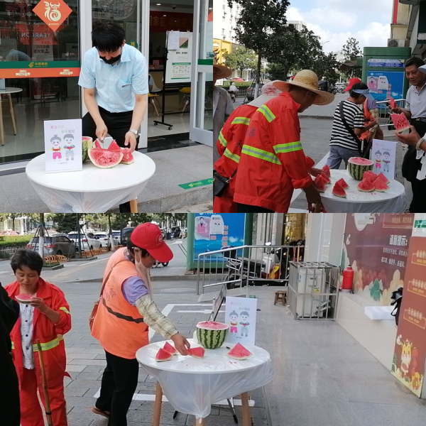 為積極響應(yīng)市總工會號召,給全市環(huán)衛(wèi)工人、園林工人和快遞人員等起早貪黑工作的外勤人員提供一個歇息之地,讓他們可以在口渴時喝杯水、疲勞時歇歇腳、天熱時避避暑、下雨時遮遮雨,馬鞍山市郵政分公司從三伏天以來在四個位于鬧市區(qū)網(wǎng)點的“職工溫馨驛站”開展了“夏日炎炎,郵你超甜公益”活動,凡是經(jīng)過網(wǎng)點門口的都可以免費享用網(wǎng)點提供的西瓜解暑,同時,提醒大家特殊時期要做好個人防護,出入公共場所要佩戴口罩,真正讓辛勤勞作的外勤人員感到在“家”休息的感覺。