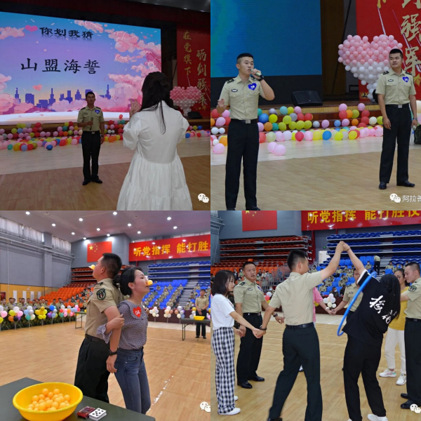 此次活動(dòng)內(nèi)容豐富、精彩紛呈,有歡樂(lè)趣味的互動(dòng)游戲,有鐵骨柔情的才藝展示,還有浪漫心動(dòng)的現(xiàn)場(chǎng)告白,將活動(dòng)氛圍一次次推向高潮?;顒?dòng)期間還現(xiàn)場(chǎng)觀摩了軍史長(zhǎng)廊,觀看了《扎根大漠 礪劍強(qiáng)軍》和《蒼天般的阿拉善》宣傳短片,進(jìn)一步激發(fā)了廣大青年的愛(ài)國(guó)擁軍之情。
