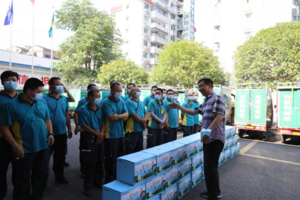在夷陵區(qū)夷興大道投遞站,喻明強(qiáng)總經(jīng)理親手將清涼大禮包送到34名投遞員手中,代表市公司黨委對他們表示親切慰問,囑咐他們,注意安全,做好普遍服務(wù),在高溫、多雨天氣里,注意防暑防疫,還要做好與客戶的溝通,確保人身、郵件、交通等安全。