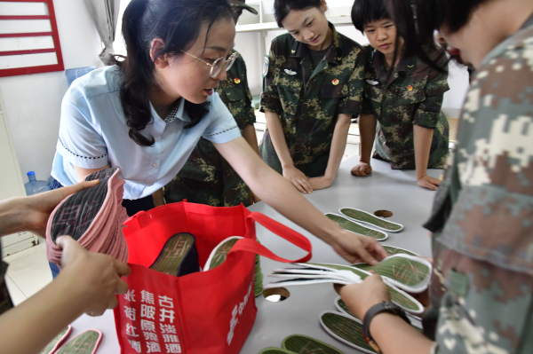 活動中,池州郵政一行與部隊官兵進行了座談,共敘軍民魚水情。在座談會上,池州郵政表示,將一如既往的關(guān)注官兵所需,竭盡全力服務(wù)好子弟兵,與部隊共筑“書香軍營”。部隊官兵充分肯定了市分公司對部隊做出的服務(wù)工作,并對此次擁軍慰問表示歡迎和感謝。隨后,部隊官兵帶領(lǐng)大家參觀了部隊新建設(shè)的圖書館和健身館。 據(jù)了解,“最美軍嫂”、池州郵政員工馮青,連續(xù)14年累計向官兵送出近4000雙親手縫制的鞋墊,今年她計劃分批次向官兵贈送300余雙鞋墊。