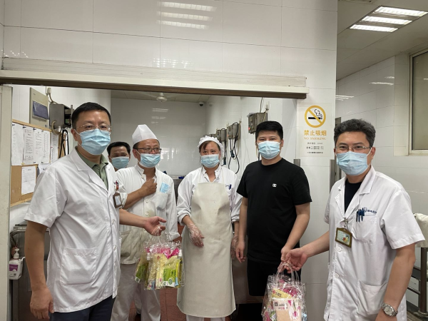 驕陽(yáng)似火、赤日炎炎,上海郵電醫(yī)院的員工們堅(jiān)持戰(zhàn)斗在防病治病的第一線。近日,上海郵電醫(yī)院院長(zhǎng)、黨委書(shū)記闕挺,副院長(zhǎng)、院工會(huì)主席胡桑一行,實(shí)地走訪了針灸科、食堂、門(mén)衛(wèi)、修理組等高溫崗位,親切地問(wèn)候了在場(chǎng)的工作人員,叮囑他們?cè)诠ぷ髦幸⒁獗Wo(hù)好自身的健康,并為他們送上了一份份防暑降溫用品。并且叮囑管理人員要落實(shí)員工防暑降溫的各項(xiàng)措施,合理安排和調(diào)整工作時(shí)間,切實(shí)保障好員工的身心健康。在院領(lǐng)導(dǎo)關(guān)心下,食堂在高溫天為員工提供綠豆湯解暑,受到廣大員工的歡迎。