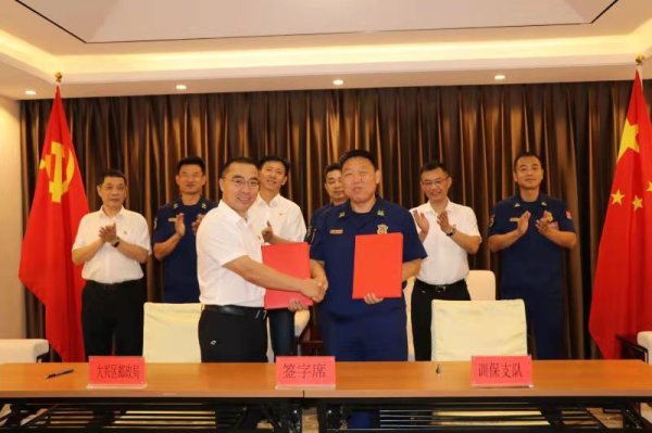 8月11日上午, 在大興區(qū)分公司工會許玉偉主席的多次聯(lián)系下,大興區(qū)分公司與北京市消防救援部隊訓(xùn)練與戰(zhàn)勤保障支隊簽署戰(zhàn)略合作協(xié)議。郵、軍雙方將以黨組織結(jié)對共建為載體,深化交流合作,通過開展黨員紅色教育、消防安全培訓(xùn)、金融知識宣講、集郵文化宣傳等系列活動,錘煉黨性修養(yǎng),提供金融、郵政、寄遞服務(wù),助力安全生產(chǎn)經(jīng)營水平提升等方面實現(xiàn)共建互聯(lián),實現(xiàn)雙方資源共享互利共贏。區(qū)分公司李宏彥總經(jīng)理帶領(lǐng)班子成員和相關(guān)部室負責(zé)人以及消防訓(xùn)保支隊魏興雷支隊長、岳學(xué)紅政委出席了簽約、揭牌儀式。