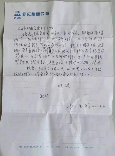 老人對(duì)劉曉紅同志多年來(lái) “急用戶之所急,用心用情為客戶服務(wù)” 以實(shí)際行動(dòng)踐行“人民郵政為人民”初心使命的工作態(tài)度特提出感謝和表?yè)P(yáng)(北京郵政工會(huì))