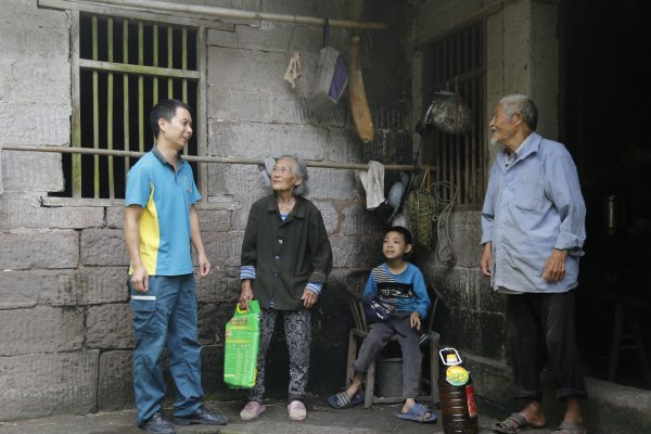 瞿蘭翔一邊與蔡父蔡母親拉著家常,一邊將大米和菜籽油遞給他們,一陣寒暄之后,惦記著車上裝著的包裹還要趕在5點(diǎn)之前處理完畢,瞿蘭翔起身就要往回趕。見瞿蘭翔還有工作要忙,蔡祖友父親母親也不再過多挽留。