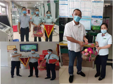 活動取得了良好的發(fā)展成果,截止9月16日,銅山區(qū)分公司三季度實現標保新增9157萬元,中郵保險新增2076萬元。圖為銅山區(qū)分公司工會陪同區(qū)分公司分管領導、掛鉤部門負責人分層級現場贈送果籃、頒發(fā)流動紅旗。