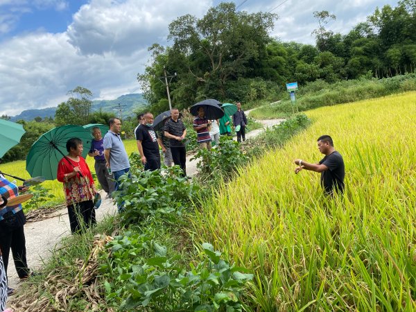 時間轉(zhuǎn)眼來到8月,眼看稻田里已是一片金黃,為營造身臨其境、眼見為實(shí)的示范帶動效果,渠道部歷時兩周、冒著盛夏酷暑在5個鄉(xiāng)鎮(zhèn)示范田召開了“鄉(xiāng)村振興、郵政助農(nóng)”現(xiàn)場交流會,邀請了當(dāng)?shù)胤N植大戶、鄉(xiāng)鎮(zhèn)農(nóng)技主任、區(qū)儲備糧公司技術(shù)員以及廠家技術(shù)專家進(jìn)行現(xiàn)場交流。