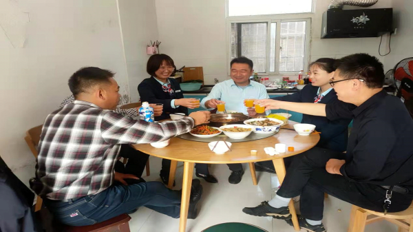 金秋十月,正是旺季金融跨賽的關(guān)鍵時(shí)間,明光市分公司市場(chǎng)營(yíng)銷(xiāo)部劉兵、綜合辦公室李輝來(lái)到三界支局開(kāi)展旺季幫扶,在跟隨支局工作人員宣傳走訪后,市場(chǎng)營(yíng)銷(xiāo)部主任劉兵來(lái)到三界支局“職工小家”親自下廚,為支局人員做了豐盛的午飯。