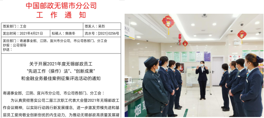 今年4月份以來,無錫郵政工會組織開展了2021年度無錫郵政員工“先進工作(操作)法”評選活動,各分工會積極組織發(fā)動,認真總結(jié)提煉,經(jīng)過初評共申報了11篇“先進工作法”。