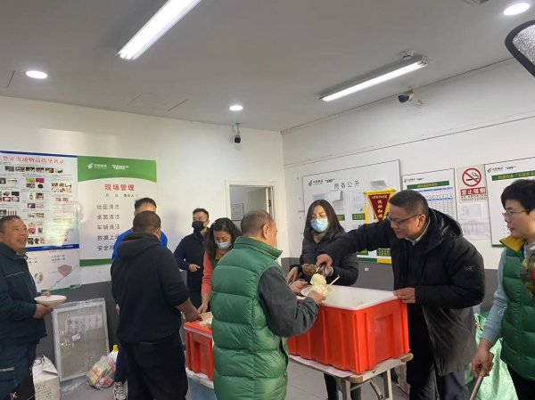 彭虎韜總經(jīng)理、楊興威副總經(jīng)理親自來到牛街營業(yè)部、馬連道投遞部、營業(yè)部慰問,為150余名職工盛飯,盛湯,并囑咐投遞員們按時吃飯,注意身體。現(xiàn)場沉浸在一片溫馨熱鬧的氣氛中,其樂融融。