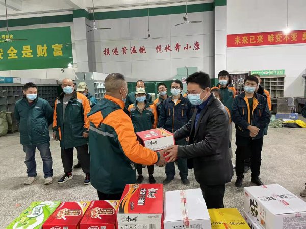 11月8日,江西省新余市郵政工會開展“雙十一”慰問活動,為奮戰(zhàn)在“雙十一”一線職工送去了牛奶、蛋糕、八寶粥和方便面等慰問品。