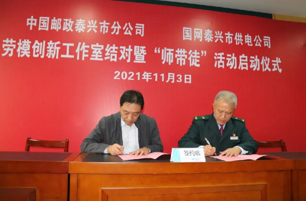 11月3日下午,泰州首次“跨行聯(lián)盟”在泰興正式啟動(dòng),泰興市郵政分公司何健忠勞模創(chuàng)新工作室與泰興市供電公司張強(qiáng)勞模創(chuàng)新工作室舉行結(jié)對(duì)共建簽約儀式。泰興市委,市、縣兩級(jí)郵政分公司及供電分公司領(lǐng)導(dǎo),社會(huì)代表等50余人出席活動(dòng)。