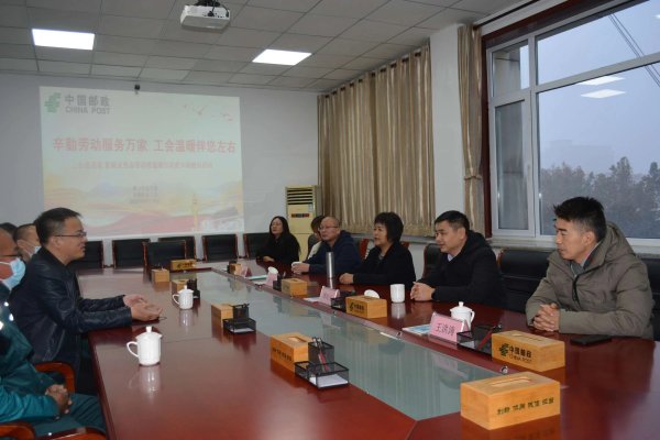 11月18日,唐山市總工會(huì)黨組成員、副主席潭海光等一行人,深入豐潤區(qū)郵政分公司,看望慰問忙碌在一線的快遞人員,豐潤區(qū)總工會(huì)黨組書記、常務(wù)副主席孟凡珍等人陪同慰問。