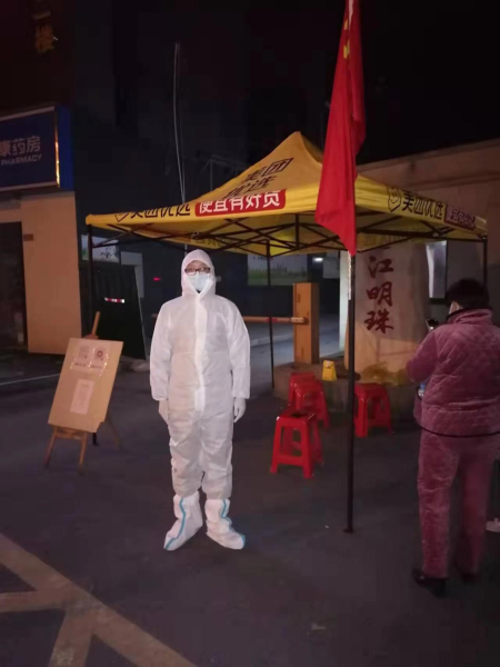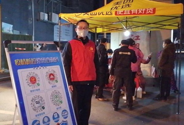 11月4日晚,第一輪核酸檢測開始后,賀進立即主動請纓與社區(qū)聯(lián)系參與疫情防控工作,協(xié)助社區(qū)開展核酸檢測信息登記、執(zhí)勤值守、現(xiàn)場秩序維護、幫助查驗居民健康碼、核對身份信息等工作。特別是針對行動不便的老人和孕婦,社區(qū)卡點開通了綠色通道,他主動靠前服務,“請大家保持間隔一米,有序排隊,提前準備好健康碼……”排隊的大家都能看到那個穿著紅色志愿者衣服的人,耐心細心地做好核酸信息采集工作。除了幫助社區(qū)開展核酸檢測,他還承擔了社區(qū)進出的登記工作。他用他的身影筑起了“紅色防線”,讓黨旗在一線高高飄揚!