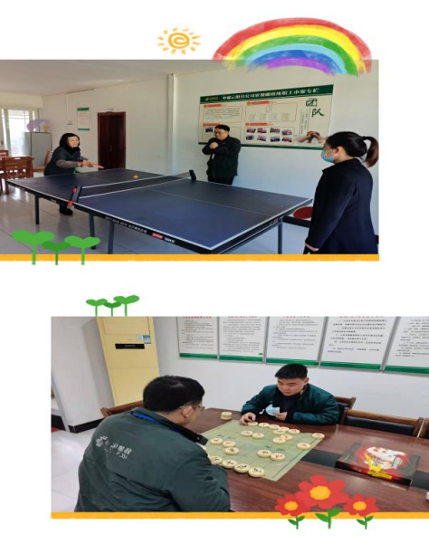 職工小家除了每天有可口的飯菜,業(yè)余活動(dòng)也是豐富多彩,體育活動(dòng),大家完全是全能型選手,乒乓球、象棋、羽毛球、跳繩、長跑什么都可以。有的就是專業(yè)選手,要么下象棋總能贏,要么打乒乓球總是無人能敵。每當(dāng)在繁忙的工作之后,大家在一起玩一玩,鬧一鬧,為工作之余又增加很多別樣的歡聲笑語,不僅有益于身體健康,也有益于心情舒緩,特別有助于大家保持工作的積極性和良好的生活狀態(tài)。