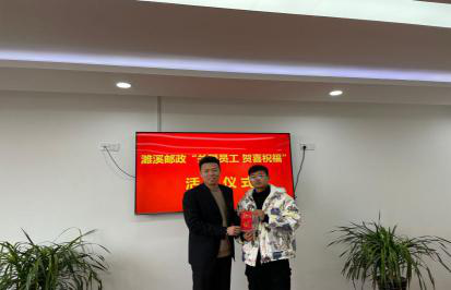 近日,濉溪縣郵政工會主席丁伯之為兩名剛剛步入婚姻殿堂的青年職工送上賀喜和祝福,對他們“舍小家顧大家”的辛勤付出表示真誠感謝,希望他們在今后的工作生活中,能夠持續(xù)創(chuàng)造幸福、傳遞幸福、分享幸福,建設好自己的小家庭,奉獻企業(yè)大家庭。