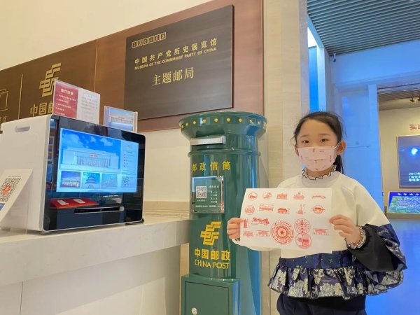 在蓋戳服務(wù)處,一共17個黨史主題的郵戳戳中了觀眾的需求點。9歲的潘韻茜小朋友從書包里掏出提前準(zhǔn)備好的A4紙,工工整整地將每一個紀(jì)念戳蓋在上面。潘韻茜的媽媽告訴記者:“很小的時候,我女兒就對郵票、明信片感興趣,每次出門明信片必買、郵戳必蓋?!迸隧嵻缭趮寢尩呐惆橄拢x購了不少黨史主題郵品。她說:“回家了,我還想對著這些郵戳和明信片,再溫習(xí)一下看過的展覽?!?/p>