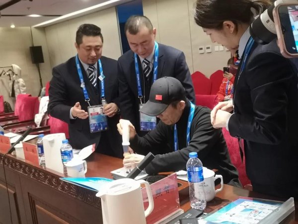 隨著冬奧會(huì)閉幕式的臨近,冬奧組委導(dǎo)演團(tuán)隊(duì)的工作也日益忙碌,在日常的上門走訪過程中劉榮偉與導(dǎo)演團(tuán)隊(duì)建立聯(lián)系,并在服務(wù)過程中主動(dòng)介紹開幕式紀(jì)念郵票也是冬奧會(huì)開閉幕式總導(dǎo)演張藝謀參與設(shè)計(jì)的這一特點(diǎn),幾經(jīng)溝通,臨時(shí)郵局服務(wù)團(tuán)隊(duì)在閉幕式演練間隙上門開展服務(wù)并與張藝謀導(dǎo)演見面,短暫的服務(wù)過程中服務(wù)團(tuán)隊(duì)向張藝謀介紹了冬奧集郵品和郵政日戳,并對(duì)郵政冬奧個(gè)性化郵票制作服務(wù)進(jìn)行了宣傳,張藝謀導(dǎo)演饒有興致地體驗(yàn)了郵戳加蓋過程并在開幕式郵折上簽字,留下了這份珍貴而又美好的紀(jì)念。