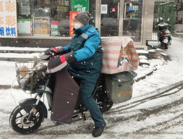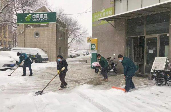 針對(duì)此次降雪持續(xù)時(shí)間長(zhǎng)、累計(jì)雪量大、降溫顯著、能見(jiàn)度低等特點(diǎn),豐臺(tái)區(qū)分公司第一時(shí)間向各支局發(fā)布工作提示。提示各單位外勤作業(yè)注意安全,車(chē)輛行駛時(shí)各行其道、避讓行人、降低車(chē)速、保持車(chē)距,不搶行、不逆行、不闖燈,集中精力,遇有特殊情況及時(shí)上報(bào),確保行車(chē)安全。各網(wǎng)點(diǎn)營(yíng)業(yè)前,鐵鍬、掃帚齊上陣,及時(shí)對(duì)支局門(mén)口路面進(jìn)行清理,確保主要通道無(wú)積雪積冰,各項(xiàng)經(jīng)營(yíng)工作平穩(wěn)有序。為保障郵路暢通,投遞崗位員工冒雪穿梭在大街小巷,按時(shí)將郵件送到用戶(hù)手中。(北京郵政工會(huì))
