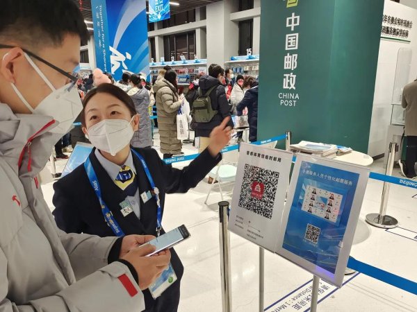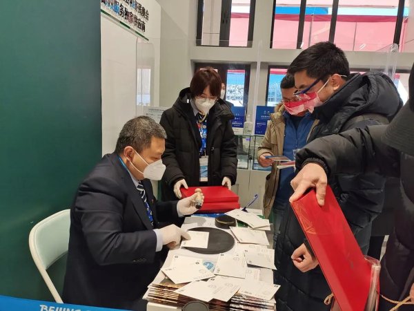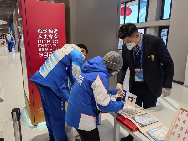 2月5日,中國短道速滑隊奪得本屆冬奧會中國體育代表團首金的同時,冬奧會開幕紀念系列郵品在線下首賣。臨時郵局提前做好了充分準備,郵局內(nèi)部分設(shè)新票和首日封銷售區(qū)域、明信片打印區(qū)、郵品銷售區(qū)、紀念戳加蓋區(qū)、個性化郵票洽談區(qū),現(xiàn)場秩序井然。盡管處在閉環(huán)外,仍有外國工作人員到臨時郵局選購郵品,服務(wù)團隊的工作人員熟練運用所學(xué)的業(yè)務(wù)英語與其溝通,幫助用戶挑選郵品,得到用戶贊揚。