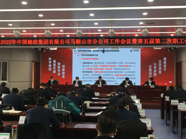 會上,市分公司黨委書記、總經(jīng)理萬頃同志作了題為《聚焦“五個(gè)惟有” 強(qiáng)化戰(zhàn)略引領(lǐng) 奮力譜寫馬鞍山郵政高質(zhì)量發(fā)展新篇章》的工作報(bào)告。他指出,回望過去的2021年,讓我們倍加自豪的是干成了幾件大事,讓我們倍增信心的是收獲了幾件喜事,讓我們倍添底氣的是破解了幾件難事,讓我們倍感欣慰的是為員工辦好了幾件實(shí)事。并從業(yè)務(wù)發(fā)展全面追趕、責(zé)任擔(dān)當(dāng)不斷彰顯、協(xié)同發(fā)展持續(xù)深化、平臺轉(zhuǎn)型扎實(shí)推進(jìn)、發(fā)展基礎(chǔ)持續(xù)夯實(shí)、黨的建設(shè)全面加強(qiáng)等六個(gè)方面,全面總結(jié)了2021年工作。 關(guān)于做好2022年工作,會議要求聚焦質(zhì)量和效益,從持續(xù)豐富普遍服務(wù)內(nèi)涵、持續(xù)推進(jìn)代理金融轉(zhuǎn)型升級、持續(xù)推進(jìn)寄遞業(yè)務(wù)有效益規(guī)模發(fā)展、持續(xù)推進(jìn)農(nóng)村電商模式優(yōu)化、持續(xù)打造協(xié)同競爭優(yōu)勢等五個(gè)方面,縱深推進(jìn)馬鞍山郵政高質(zhì)量發(fā)展。夯實(shí)發(fā)展根基,從堅(jiān)持黨建引領(lǐng),進(jìn)一步提升黨建工作水平;踐行央企擔(dān)當(dāng),進(jìn)一步服務(wù)國家戰(zhàn)略;推進(jìn)管理升級,進(jìn)一步增強(qiáng)企業(yè)活力;打造和諧企業(yè),進(jìn)一步營造良好氛圍等四個(gè)方面,為完成全年目標(biāo)任務(wù)提供保障支撐。 會議表彰了2021年度先進(jìn)單位、先進(jìn)集體和先進(jìn)個(gè)人,聽取了《2022年職工提案答復(fù)》,學(xué)習(xí)了省分公司2022年為職工辦實(shí)事活動通知,審議通過了《中國郵政集團(tuán)有限公司馬鞍山市分公司郵政服務(wù)質(zhì)量管理考核辦法》,開展了2021年度領(lǐng)導(dǎo)人員民主測評、黨建工作民主測評和干部選拔任用“一報(bào)告兩評議”。與會代表深入討論了萬頃總經(jīng)理所作的工作報(bào)告。