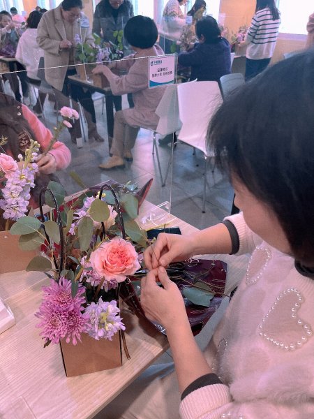 活動(dòng)現(xiàn)場,美麗的鮮花鋪滿桌面。伴隨著陣陣花香,江西省分公司直屬機(jī)關(guān)工會(huì)邀請(qǐng)專業(yè)花藝?yán)蠋?,為大家詳?xì)介紹了花材知識(shí)、插花藝術(shù)及選購鮮花的常識(shí)和注意事項(xiàng)等,并示范了插花技巧。浪漫的粉玫瑰、靈動(dòng)的紫羅蘭、優(yōu)雅的康乃馨、可愛的小雛菊,各色花卉爭奇斗艷,大家通過靈巧的雙手對(duì)花朵們進(jìn)行修剪、整枝,再根據(jù)不同的色彩和層次搭配在一起,一盆盆融合了自己豐富想象力的插花作品悅?cè)徽宫F(xiàn)。大家手捧著自己精美的插花作品,臉上洋溢著燦爛笑容。
