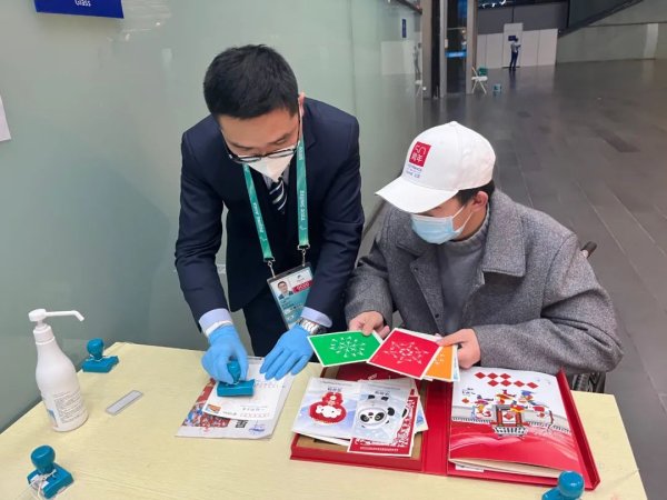 工作人員為殘疾人觀眾耐心的介紹并幫助選購(gòu)郵品,加蓋紀(jì)念戳。這位殘疾人觀眾對(duì)工作人員熱情周到的服務(wù)贊不絕口,還勾起了觀眾對(duì)2008年北京夏季奧運(yùn)會(huì)的回憶:“2008年我收藏了一些奧運(yùn)會(huì)的紀(jì)念郵品,通過(guò)你們的講解和今天比賽的場(chǎng)景,讓我對(duì)冬奧會(huì)郵品有了新的認(rèn)識(shí),我會(huì)好好珍藏這些有重大紀(jì)念意義的郵品?!?/p>