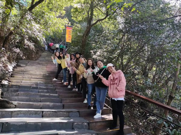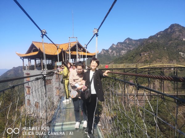 上午,女同胞們一行步入了大覺山古鎮(zhèn),古鎮(zhèn)依山傍水、建筑錯落有致,結合地形地貌融入一河三街六巷九府,再現(xiàn)大宋風骨,讓大家仿佛回到了千年前的大宋繁華商都;踏上了中國首條長100米,垂直高度達到100多米的高空玻璃橋(也稱“太空步廊”),縱目武夷山脈逶迤山色,俯視腳下萬丈深淵,感受大自然的神奇魅力;進入了座落在蓮花峰海拔1000米的一個天然巖洞內集“儒、釋、道”三教合一的大覺巖寺,凝聽美妙神奇的民間傳說;最后,大家拾級而上,經過1365個石階到達南天門。站在南天門上,極目遠眺,所有的大山此時都變得渺小,置身其中,人會有很多的感觸,所有困難都變得不是困難,所有的人生坎坷此時也都變得微不足道了!
