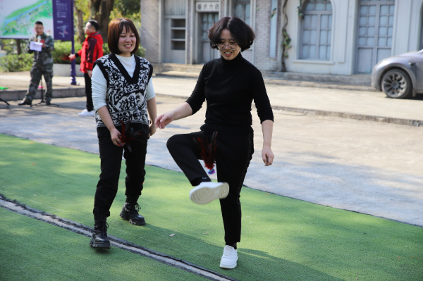 跳繩、踢毽子、轉(zhuǎn)呼啦圈、一圈到底、毛毛蟲夾球、蒙眼轉(zhuǎn)圈吃香蕉等團(tuán)體趣味游戲也輪番進(jìn)行?;顒?dòng)中大家你追我趕,勇往直前,誰也不肯服輸,同時(shí)大家也相互鼓勵(lì)、相互幫助,經(jīng)過一番激烈角逐大家順利完成了各項(xiàng)活動(dòng)。