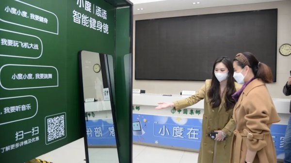 在中國(guó)郵政小度智能體驗(yàn)店里,設(shè)置了多種場(chǎng)景下的智能設(shè)備體驗(yàn)區(qū),可以體驗(yàn)到小度旋轉(zhuǎn)智能屏、小度降噪耳機(jī)、小度添添智能健身鏡等智能產(chǎn)品,用戶親臨工體郵局就可以用小度給家里的“老小孩”們打個(gè)電話或視頻,感受科技帶來(lái)的“穿越空間的陪伴”。