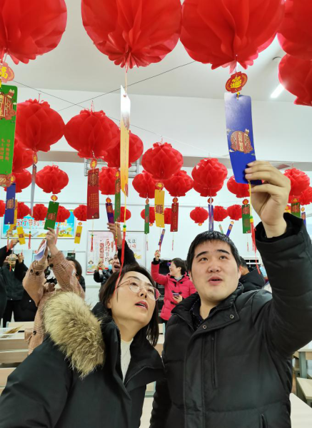 本次展示活動共收到了33幅作品,主要囊括了繪畫、書法、攝影、手工作品。 活動現(xiàn)場,手工作品面前,不時傳來女職工們贊嘆的聲音,她們驚喜看著一對大紅色,喜氣洋洋的古代大婚男女對娃擺件《龍鳳呈祥》,這對擺件從發(fā)飾,頭冠,貼花,到身上的彩珠都是手工縫制、一針針鉤好,女鳳冠的每一顆珍珠的長度,和固定的力度,發(fā)飾的噴漆都是作者用心制作。此作品做了三個月左右才完美收工。 攝影作品前,徐紅副主席抓拍的《鬧元宵.猜燈謎》的照片洋溢著喜慶歡樂的氣氛,讓大家又一次回憶起職工們當(dāng)時猜燈謎的歡樂場面。