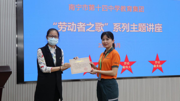 鄧艷芬以《風(fēng)雨兼程——郵路上的平凡人生》為主題,講述自己從認(rèn)識(shí)郵政、進(jìn)入郵政、苦練技能,到成為一名營業(yè)部負(fù)責(zé)人、一名“全國五一巾幗標(biāo)兵”“全國五星級(jí)投遞員”“全國郵政行業(yè)勞動(dòng)模范”的成長歷程。通過馬班郵路上的忠誠信使王順友、“溜索姑娘”尼瑪拉木、“雪線郵路”上的幸福使者其美多吉等一個(gè)個(gè)先進(jìn)典型人物,救活“死”信、備戰(zhàn)“雙11”、抗擊疫情等一個(gè)個(gè)親歷親見的鮮活故事,自行車投遞、電動(dòng)車投遞、自動(dòng)化智能化分揀等一個(gè)個(gè)不斷變遷的工作場景,鄧艷芬向南寧市第十四中學(xué)師生展示中國郵政多年來改革發(fā)展的成果和“人民郵政為人民”的初心和使命,贏得了廣大師生的贊譽(yù)。