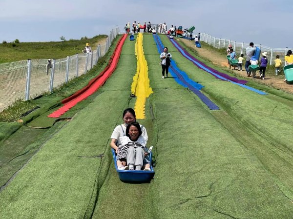 極速滑草上,遠(yuǎn)遠(yuǎn)望去四條彩虹滑道氣勢恢弘,靈動(dòng)壯美,10秒鐘60米,整個(gè)身體仿佛從彩虹中穿過,急速飛躍體驗(yàn)速度與激情,尖叫!歡呼!讓大家體驗(yàn)歡樂與刺激的飛翔感。
