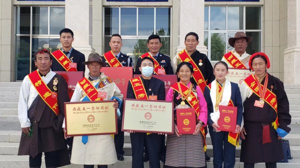 ?。▓D為:措姆同志榮獲自治區(qū)“五一”勞動(dòng)獎(jiǎng)?wù)?nbsp; 第一排右二 )