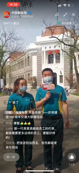 5月3日,由交通運(yùn)輸部主辦的“強(qiáng)國(guó)有我 開路先鋒 慶祝建團(tuán)100周年交通大聯(lián)播” 盛大開啟,5個(gè)郵政青年集體(個(gè)人) 參加本次大聯(lián)播活動(dòng),展現(xiàn)郵政青年風(fēng)采,喊出“強(qiáng)國(guó)有我”最強(qiáng)音!
