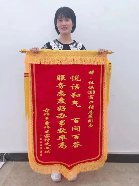 這位老人名叫史文琪,來自余干縣古埠鄉(xiāng)童埠史家村。他為何要給素不相識(shí)的張志燕送錦旗?故事還得從前一天說起:5月6日,老人專程從鄉(xiāng)下趕來,為其在江西省新余市異地上學(xué)的孫女辦理社??ā堉狙酂崆榈亟拥搅怂?。由于老人沒有文化,在辦理社??〞r(shí),無法準(zhǔn)確提供孫女的信息和地址。張志燕想了很多辦法,經(jīng)過反復(fù)溝通,都得不到確切的信息,老人非常著急,不知如何是好。她一邊安撫老人,一邊繼續(xù)想辦法。她與老人一起等到中午,趁學(xué)校放學(xué)間隙打電話聯(lián)系到了老人的孫女,拿到了準(zhǔn)確的辦卡信息。她放棄午休的時(shí)間辦好了社???,還幫助老人一起填寫了寄遞信息,將事情全部辦完。