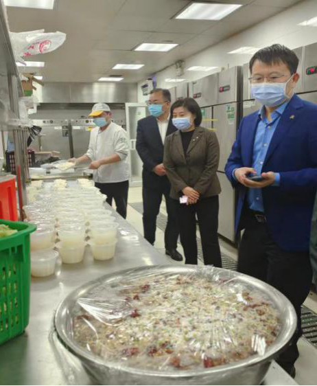 為保證駐守崗位的近兩千人用餐,5月3日深夜返崗?fù)局芯o急聯(lián)系食堂的供貨商,配送肉蛋、蔬菜、大米、面粉等食材。每天盡全力保證一日四餐、近萬人次的用餐需求,除了食材充足不斷供,背后還有不斷摸索、完善的管理經(jīng)驗(yàn):為保證餐食足量不浪費(fèi),根據(jù)系統(tǒng)數(shù)據(jù)掌握自有人員就餐人數(shù),保持菜品質(zhì)量、品種不受影響;為保證外包人員的就餐秩序,食堂與各外包公司建立微信群,提前報(bào)備人數(shù),以公司為單位有序分發(fā)預(yù)先裝好的餐盒,指定專人領(lǐng)取,分區(qū)域就餐,有效避免人員聚集。