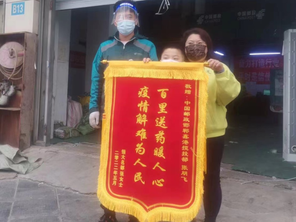 鑫港攬投部了解到情況后非常重視,立即指派張朋飛專人負責收寄并跟蹤至簽收,一場愛心接力相續(xù)展開。郵件收寄后第一時間被送往網(wǎng)路運營中心進行分揀分發(fā),隨后又被轉(zhuǎn)運往曲周。由于曲周正處于疫情封控期,曲周分公司投遞人員無法正常到崗進行投遞作業(yè)。了解到情況后張朋飛立即上報寄遞部領導,業(yè)務經(jīng)理周青龍在了解情況后,立即與曲周分公司溝通協(xié)調(diào),曲周分公司又報請縣政府批準,在市、縣分公司和縣政府三方努力下,救命藥于5月9日被成功送到患者手中。