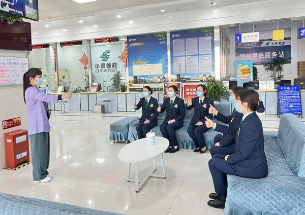為進(jìn)一步提升窗口服務(wù)質(zhì)量和水平,促星級(jí)網(wǎng)點(diǎn)標(biāo)桿建設(shè),幫助特殊人群體驗(yàn)便捷、優(yōu)質(zhì)的金融服務(wù),近期,宿州郵政四星級(jí)窗口淮海路支局特邀聾啞學(xué)校專家利用晨會(huì)時(shí)間,對(duì)該網(wǎng)點(diǎn)人員開展了廳堂服務(wù)手語培訓(xùn)。