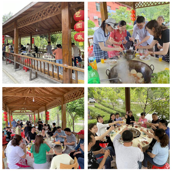 活動分成9個小組,自行采購食材,通過自助燒烤和大鍋灶的形式開展?,F(xiàn)場各個小組分工明確,大家一邊忙著手上的事務(wù),一邊說著、笑著,其樂融融,一起享受著戶外的美好時光。