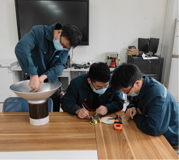 幾位年輕成員在郭正谷和李春陽的指導(dǎo)下,將工礦燈逐一拆開,零件逐個測試,最后發(fā)現(xiàn)大部分燈都只是光源板損壞,只需采購光源板進行更換就可以修復(fù)。工作室成員一起動手很快就將三十多個工礦燈修復(fù)好,測試正常后還細心地貼上標簽以備后查。工作室修復(fù)好這些工礦燈比原本計劃重新采購新燈大約節(jié)省費用19000元左右。這些修復(fù)好的工礦燈陸續(xù)將安裝回原位,恢復(fù)場內(nèi)缺失的照明,保證生產(chǎn)現(xiàn)場亮度能夠維持生產(chǎn)有序安全地進行。通過這一次修復(fù)活動,工作室成員既鍛煉的動手能力,也學(xué)習(xí)到了很多電路方面的知識,還為進口車間節(jié)省了不少維修成本,可謂是“一舉三得”。