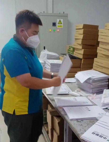 同時(shí),海淀集散中心也收寄了和平里一小的6份試卷。兩個(gè)集散試卷郵寄工作在統(tǒng)一部署下同時(shí)進(jìn)行,在監(jiān)控探頭下、單獨(dú)臺(tái)席完成封裝,包裝材料要選用防水防壓的郵政復(fù)合袋,保證試卷不潮不折。