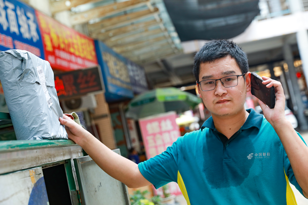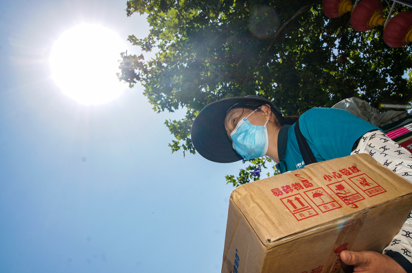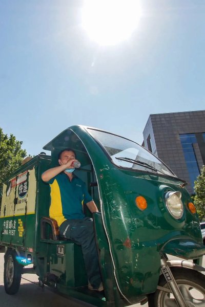 在鄭州40℃多的高溫中,攬投員們常常一身汗水,還沒來得及擦,就被太陽下襲來的熱浪蒸發(fā)得一干二凈,但攬投員并沒有因?yàn)檠谉岬奶鞖馔O履_步,而是毅然忙碌在投遞崗位上。