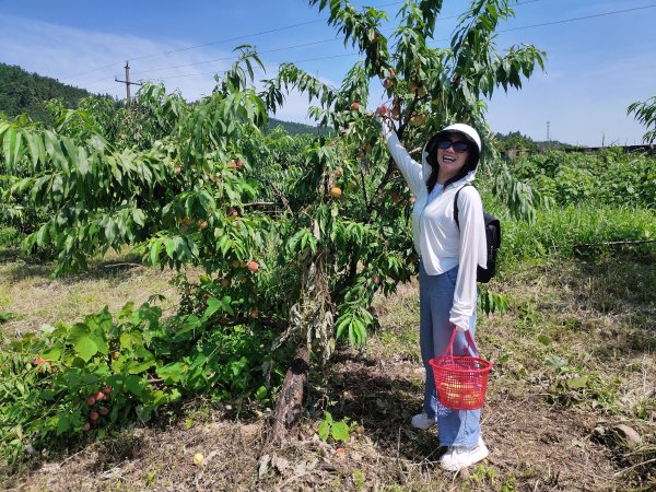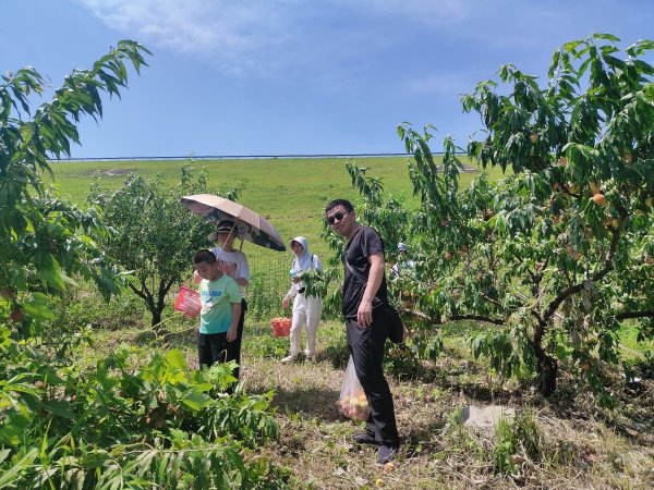 在黃金水庫旁,放眼望去,藍(lán)天白云碧水漣漪,偶爾跳出水面的小魚,還有那追逐嬉戲的鳥兒,構(gòu)成了一幅絕好的水墨丹青。下車后,大家歡快地奔向采摘園,呼吸著山林的清新空氣,感受著大自然的隨心暢意,大家的心情分外輕松。累累蜜桃散發(fā)出誘人的果香掛滿枝頭,樹枝都被壓彎了腰。摘蜜桃、品蜜桃......采摘的快樂、品嘗的喜悅、打趣的笑聲溢滿采摘園。每個(gè)人都收獲滿滿,體驗(yàn)了自由采摘帶來的收獲與快樂。大家一路歡聲笑語,平時(shí)工作的疲勞都融化在這陽光明媚的時(shí)光里。