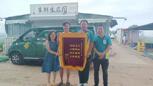 6月26日,客戶“崔鮮生農(nóng)園”將一面寫有“同心協(xié)力、城郊無阻、真誠(chéng)熱情、行業(yè)典范”的錦旗送到同城業(yè)務(wù)分公司東區(qū)集散中心員工手中,用戶特別設(shè)計(jì)出首字“同城真行”的夸獎(jiǎng),以表示對(duì)同城寄遞服務(wù)的認(rèn)可。(北京郵政工會(huì))